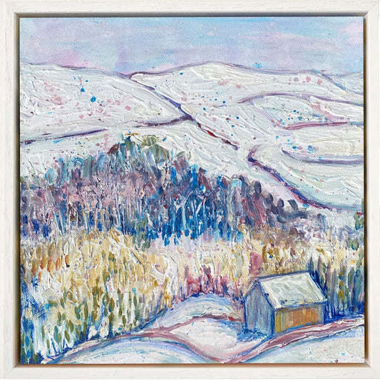 Winter barn landscape painting
