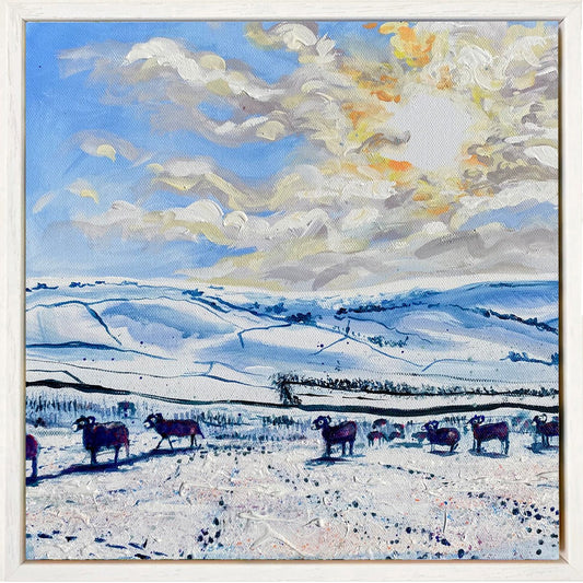 Sheep in the winter sun Landscape painting